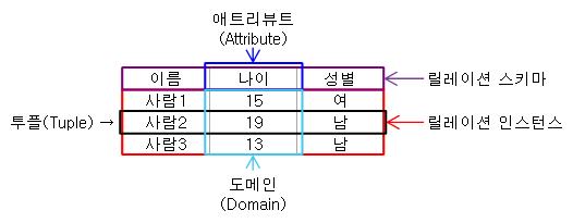 릴레이션 스키마(Relation Schema)와 릴레이션 인스턴스(Relation Instance)로 구성