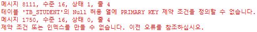 ※ PK 설정할 컬럼이 Null 허용 인 경우 제약 조건 변경 후 PK 생성