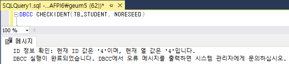 DBCC CHECKIDENT([테이블명], NORESEED)