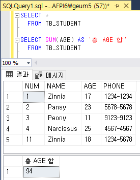 # 값의 합(SUM)
