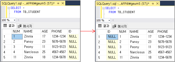 1. 테이블의 컬럼 위치 변경