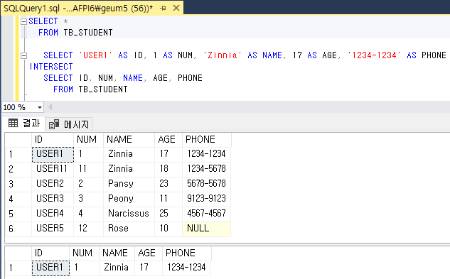 교집합(A ∩ B), 두 테이블에서 서로 일치하는 데이터 출력
