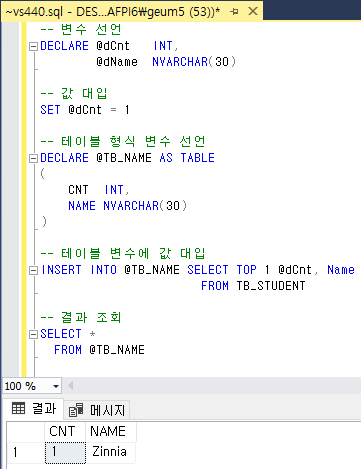 DECLARE @[변수명] AS TABLE