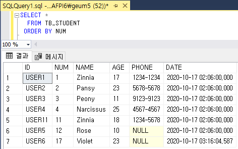 ASC DESC 누락 시 기본 오름차순(ASC)