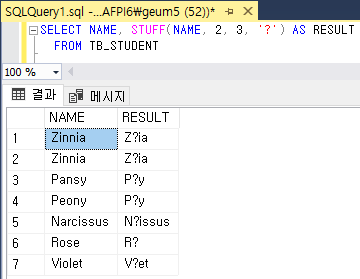 STUFF([데이터], [시작 위치], [크기], [치환 문자])