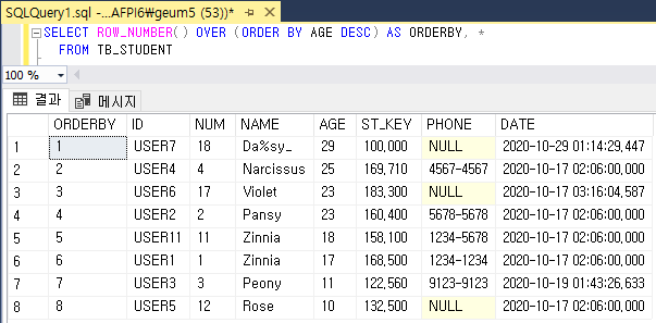 SELECT ROW_NUMBER() OVER (ORDER BY [필드] ASC/DESC)