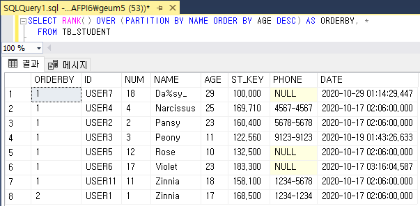 SELECT RANK() OVER (PARTITION BY [필드] ORDER BY [필드] ASC/DESC)