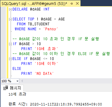 BEGIN -- 그룹 시작(흐름 제어 언어 키워드)