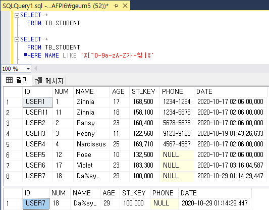 | MS SQL。문자열에서 문자, 숫자 위치 반환 및 추출(PATINDEX) (0) | 2020.12.14 |
