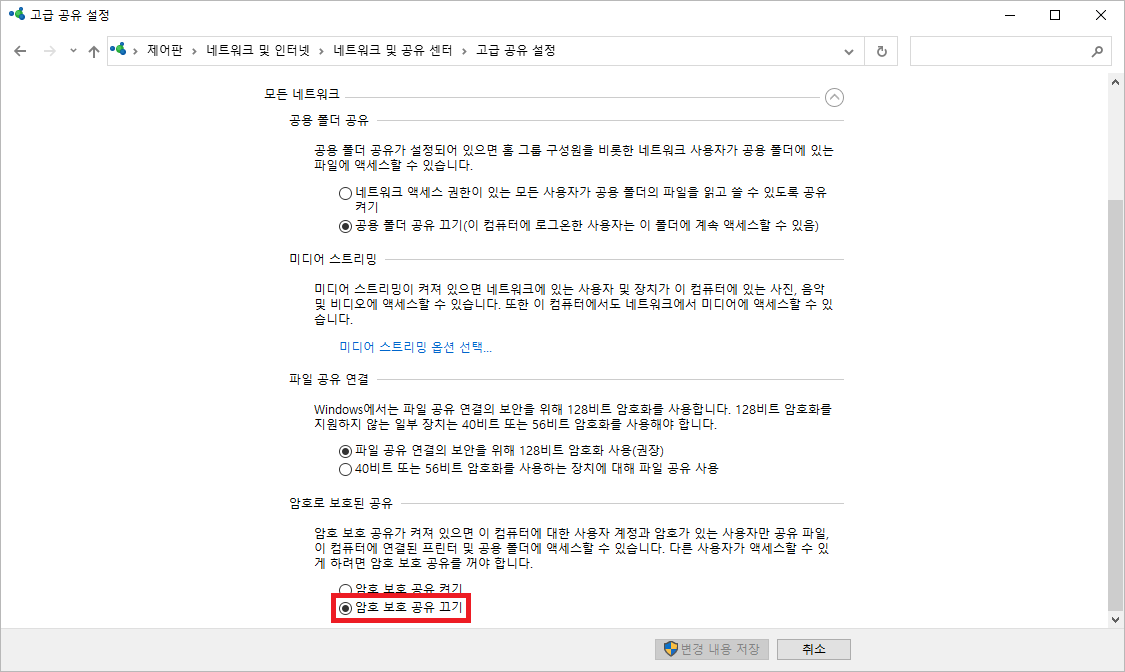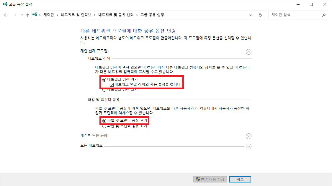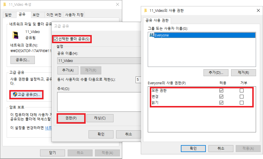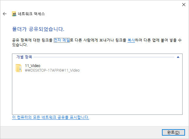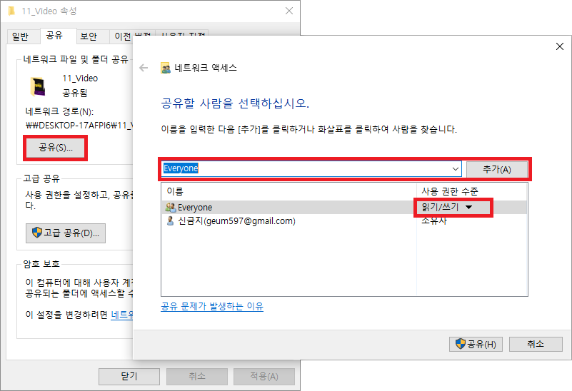 VMWare(Windows 7)와 Windows 10 네트워크 파일 공유 예시