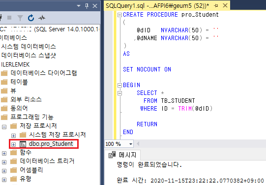 [프로시저명] [변수1 값], ..., [변수n 값]