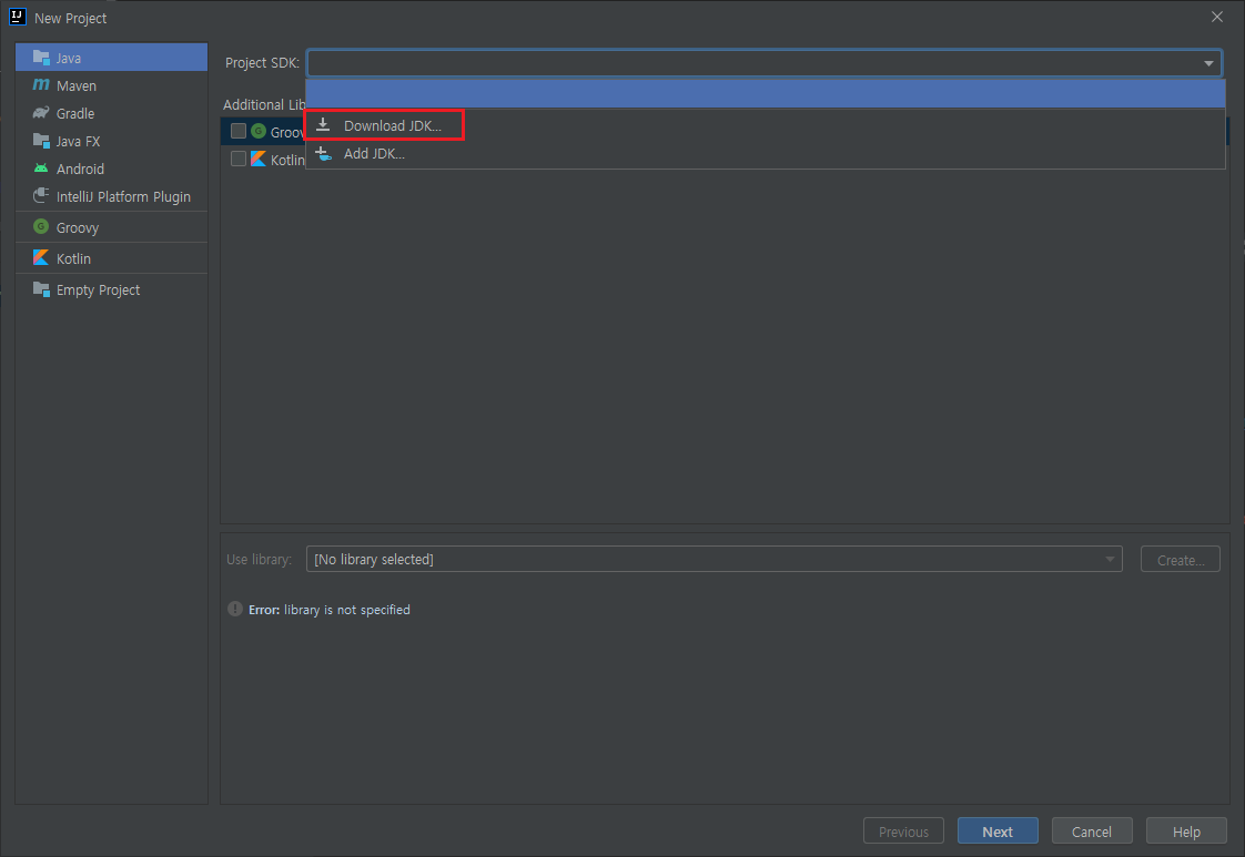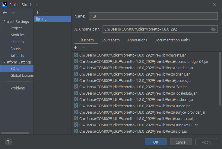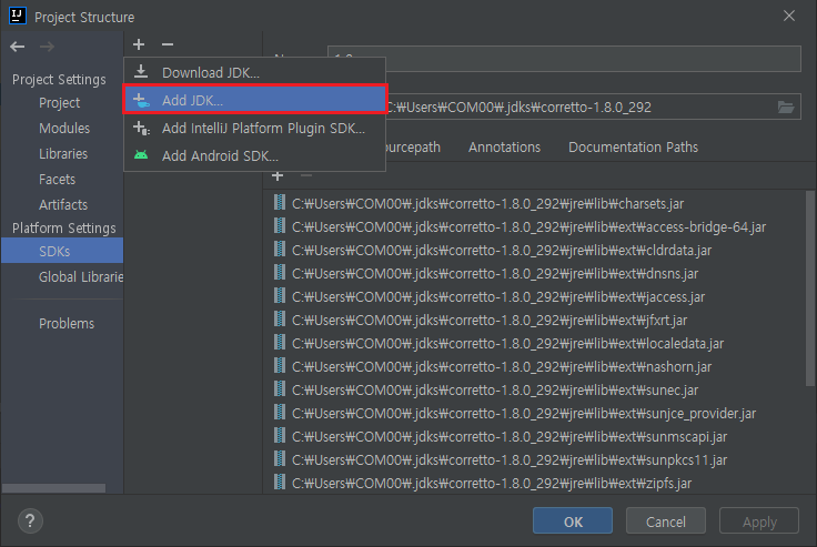 # IntelliJ에 등록된 SDK 목록 중 선택