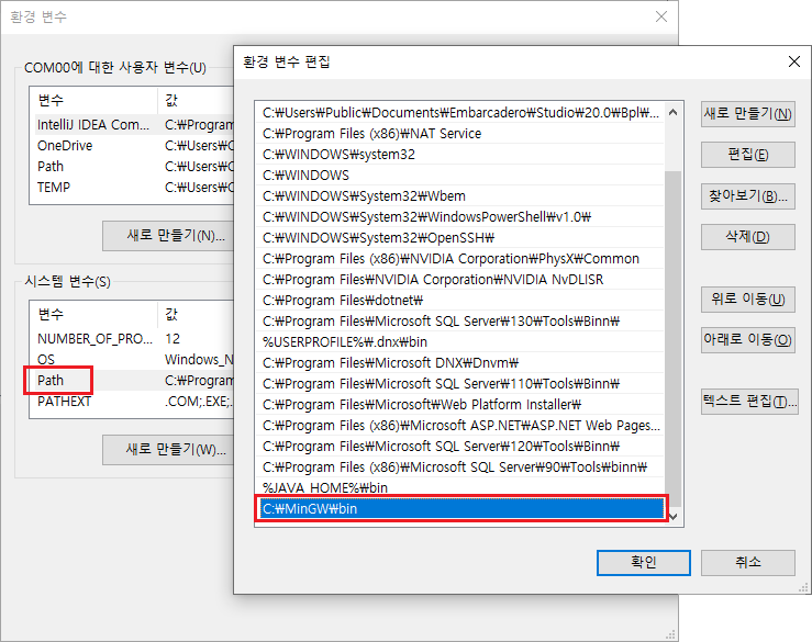# 환경 변수 설정(Windosw + R, sysdm.cpl ,3)