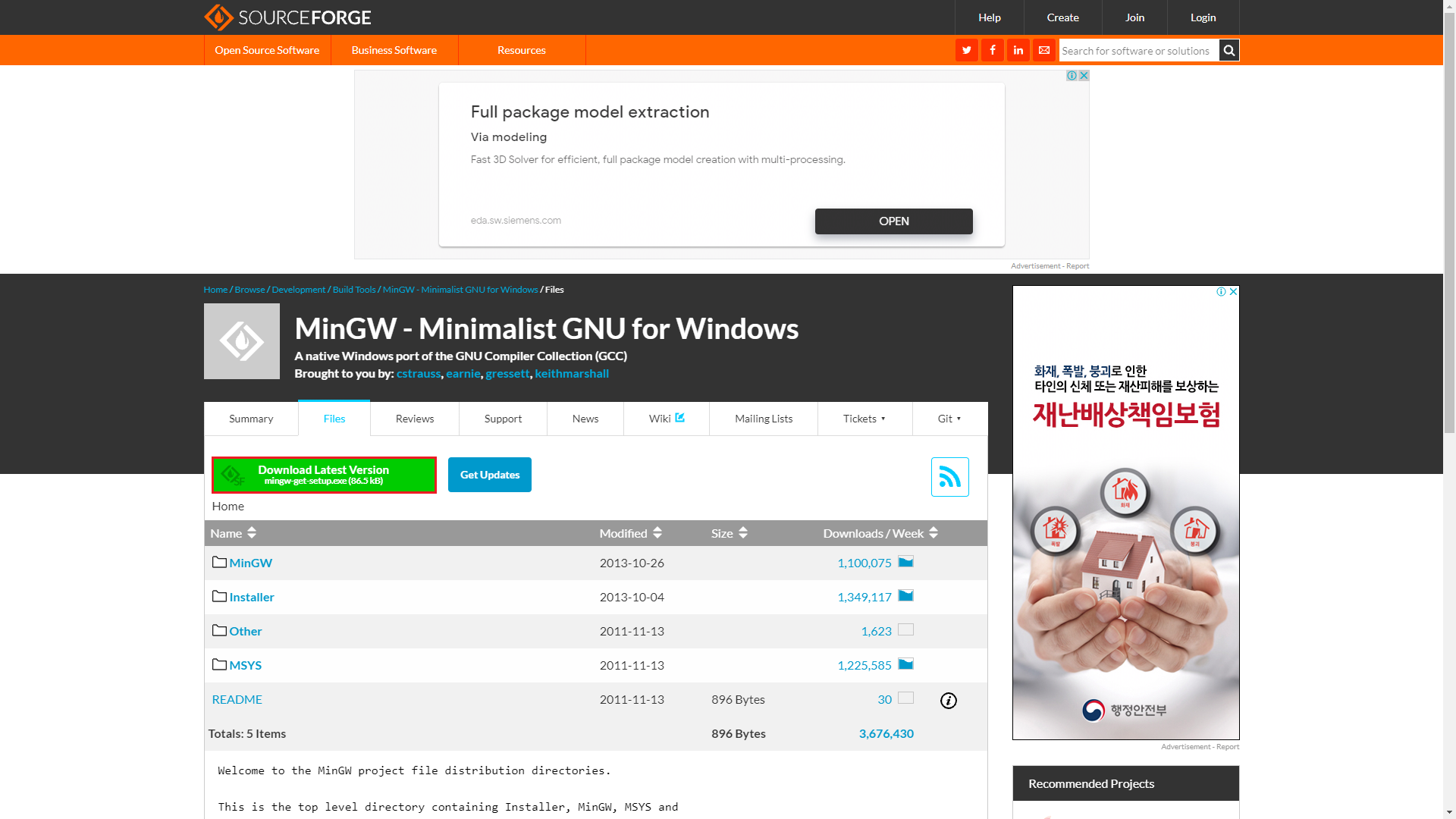 https://sourceforge.net/projects/mingw/files/