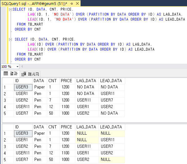 이전 행의 데이터 접근