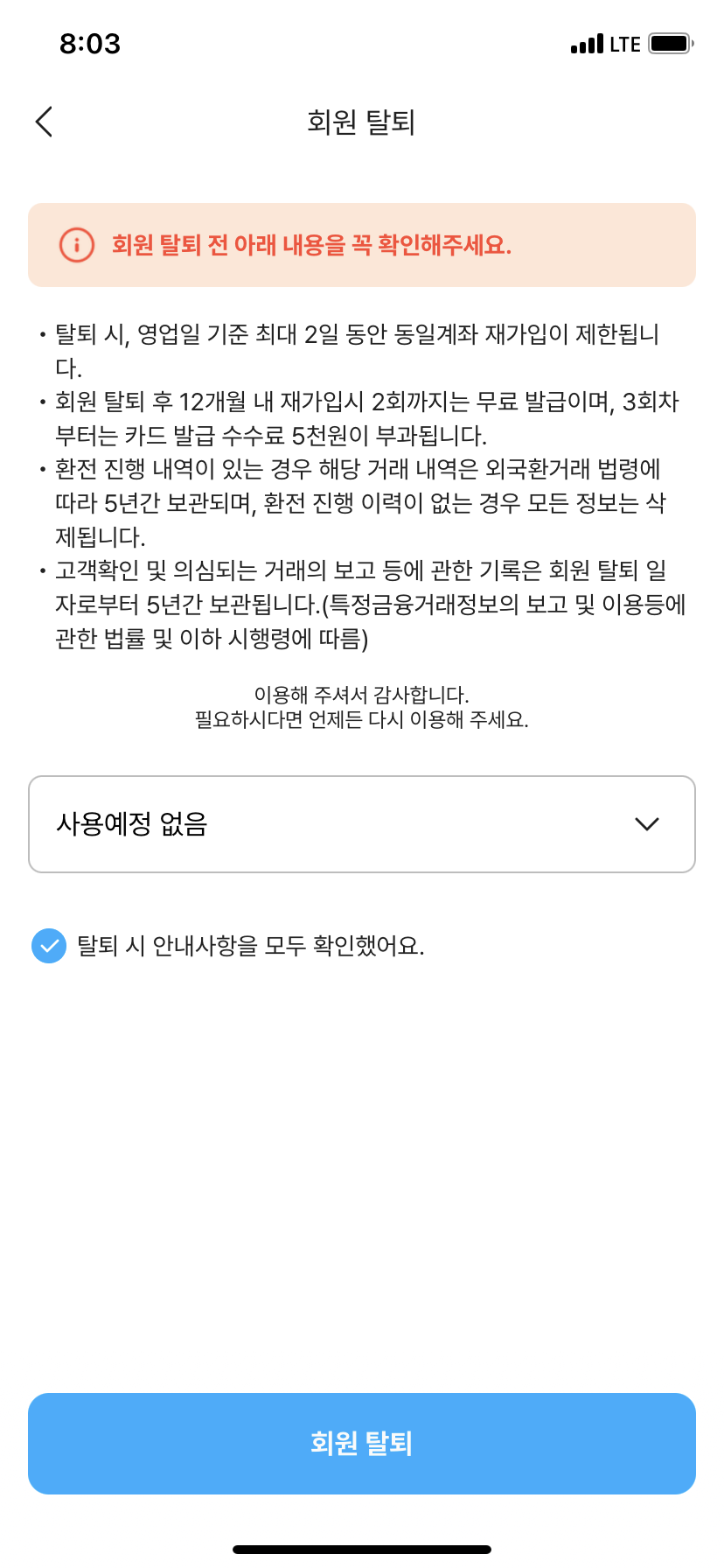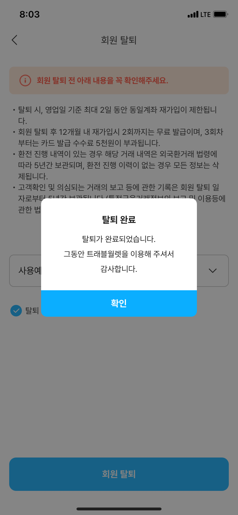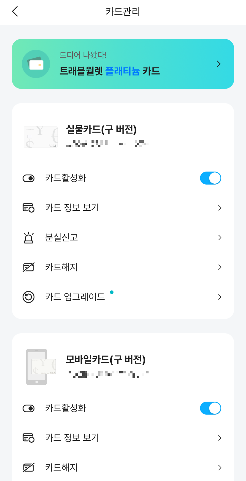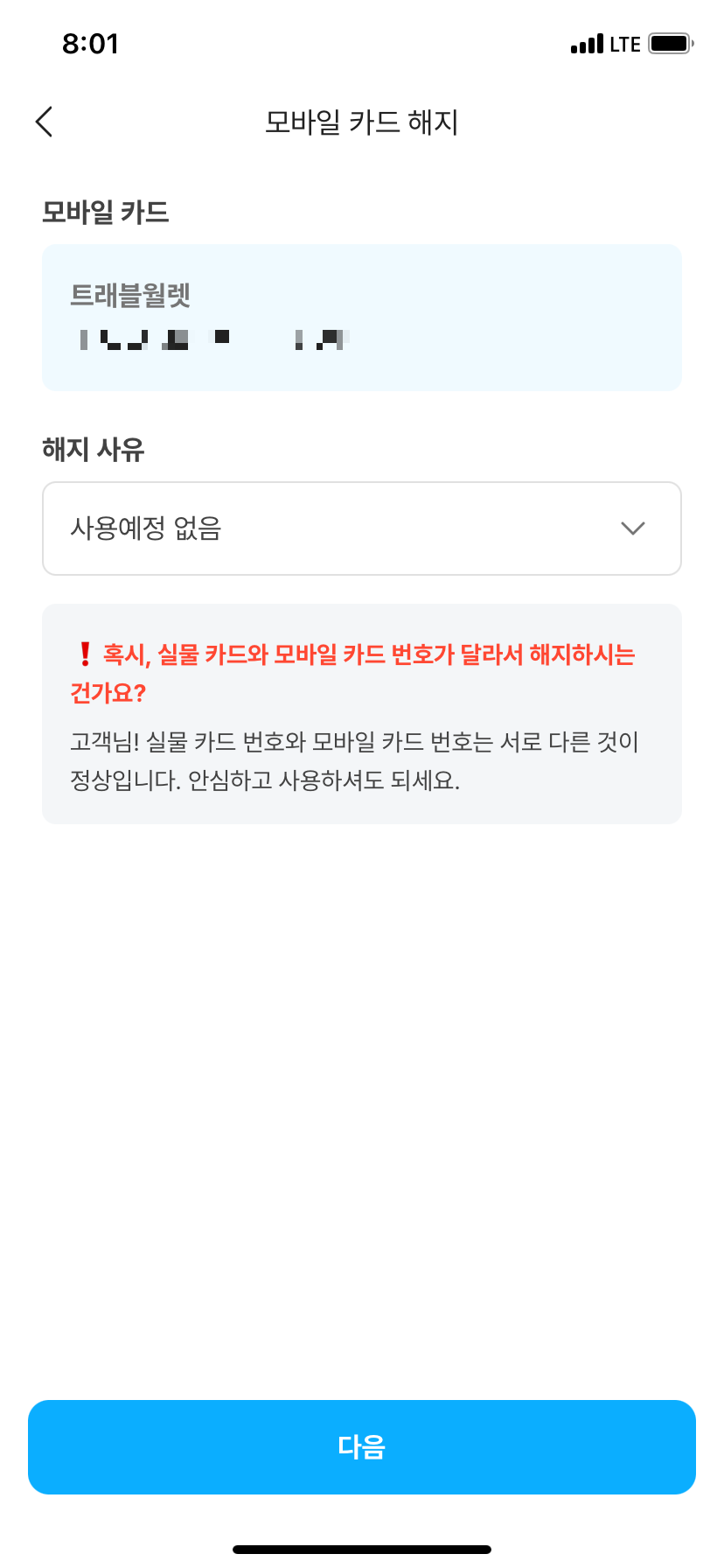 1년 전 해외에서 사용했던 카드 결제 시도 알림으로 트래블 월렛 카드 전부 해지 및 탈퇴