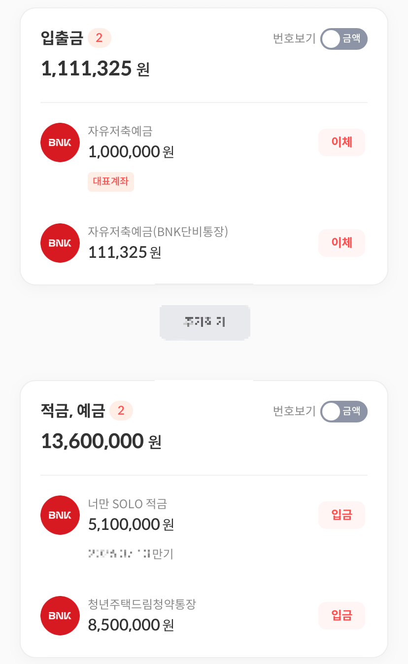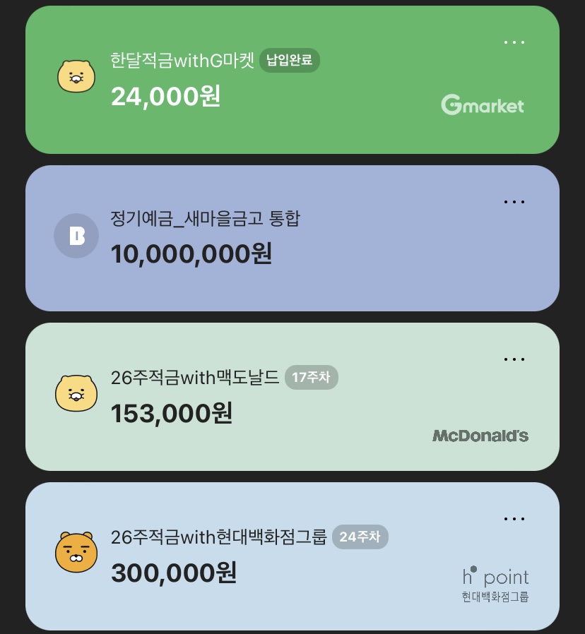 이율이 높은 2금융 은행을 주로 선호했고, 여러 번 2금융의 위험함에 대해 뉴스가 떠서 조마조마한 적도 있었는데 다행히 큰일 없이 지나갔다. 2금융은 5천만 원이 안 넘게 분산하여 예·적금을 하며 이율이 높다 해도 넘게 하지 않는다. 국내/해외 주식을 하고 있지만 국내는 물려있고, 해외는 큰돈을 넣지 않아 그냥저냥 용돈벌이 중인데 내 성향에는 적금이나 예금이 맞는 거 같기도 하다.