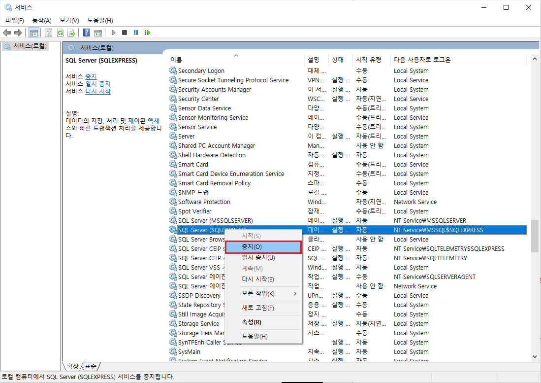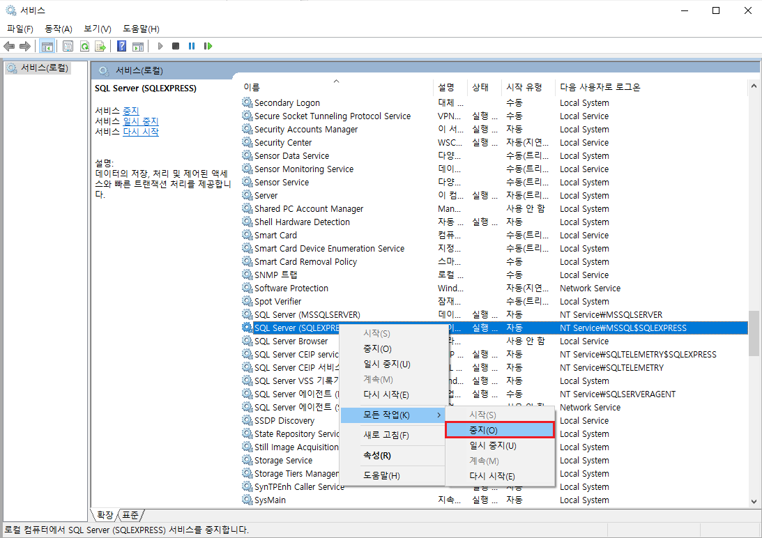 1. 서비스 중지(Windows + R, Services.msc)